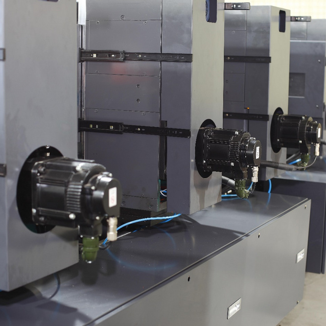 1. Unwinding Unit with Powder Brake Tension Control.(Auto Tension) 2. Paper Web Guide System 3. Multi Colours Printing Unit 4. Curing System Each Unit 5. Dia. 107mm Print Cylinder 6. Moveable Touch Screen With Full Servo Control System 7. Online Rewinding Unit with Powder Clutch Tension Control 8. Scanner for 2nd Pass Printing |