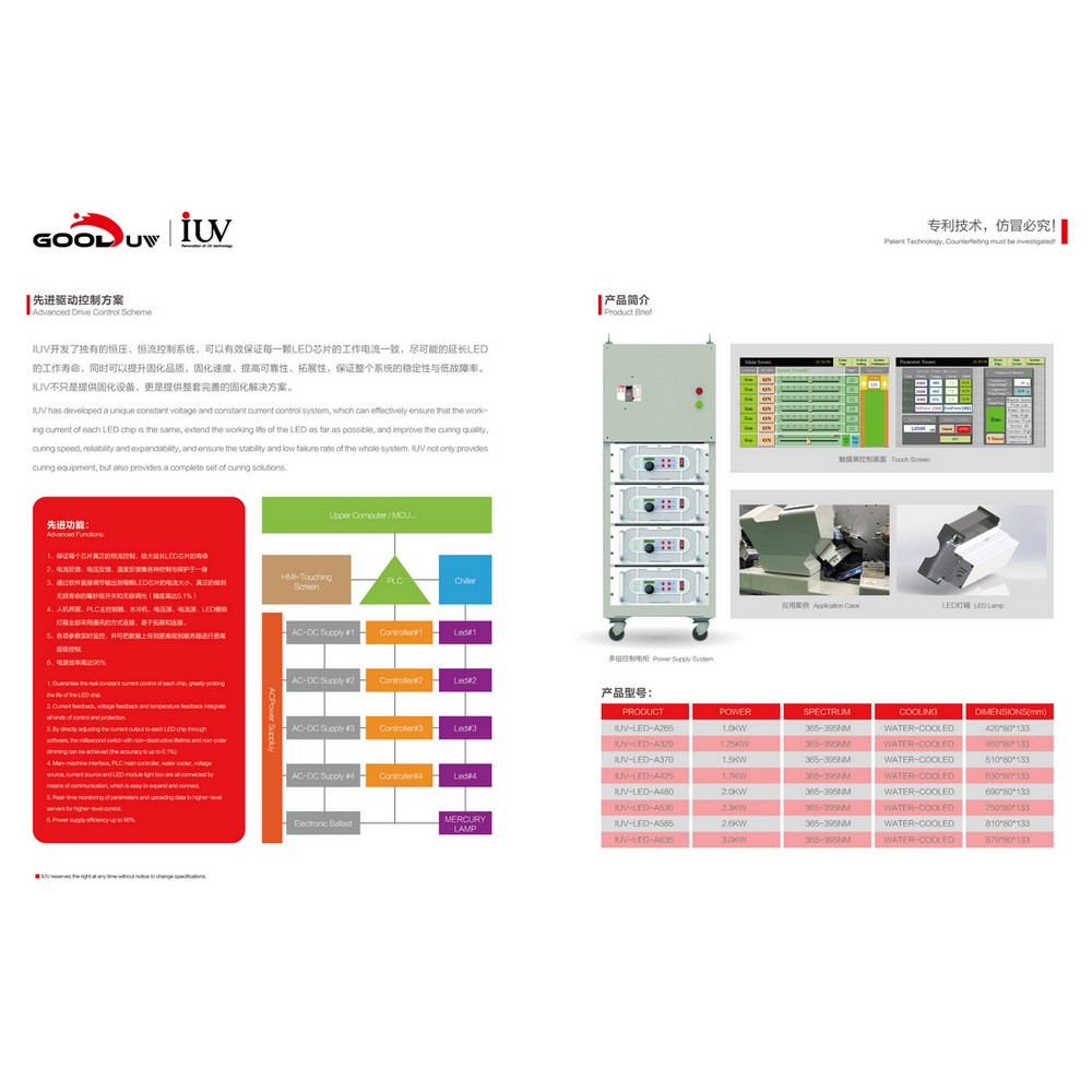Advanced Drive Control Scheme | IUV has developed a unique constant voltage and constant current control system, which can effectively ensure that the working current of each LED chip is the same, extend the working life of the LED as far as possible, and improve the curing quality, curing speed, reliability and expandability, and ensure the stability and low failure rate of the whole system. IUV not only provides curing equipment, but also provides a complete set of curing solutions. | |